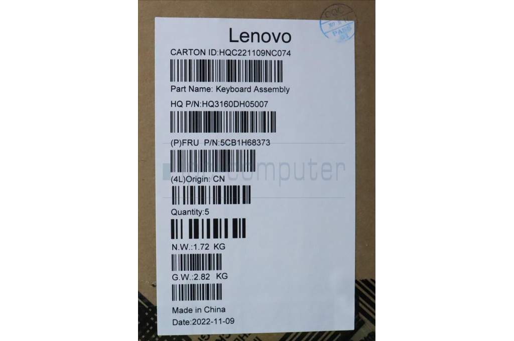 Lenovo 5CB1H68373 COVER Upper Case ASM_RUSH21CXNFPETARGY