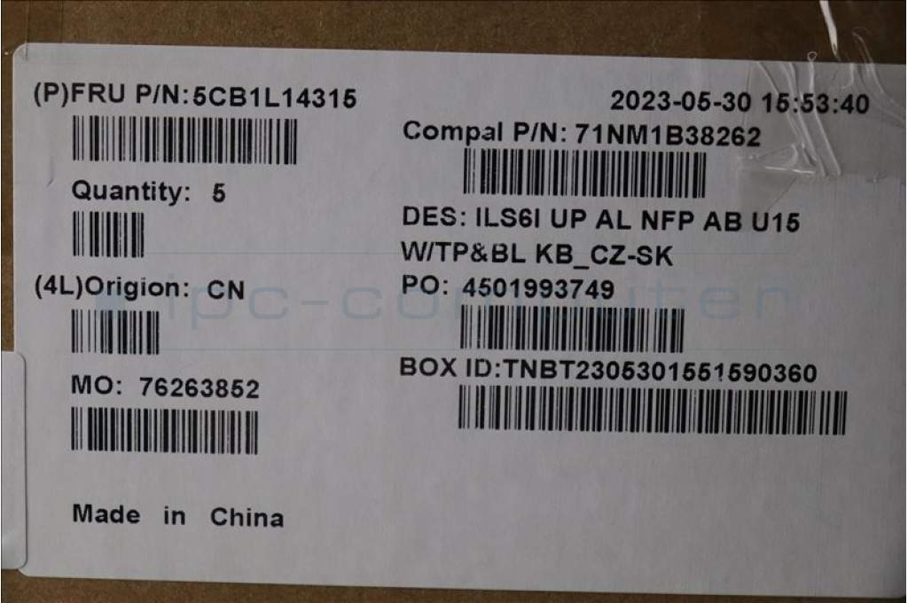Lenovo 5CB1L14315 COVER UpCase_CZE/SLK C82XF NFP AB BL AL