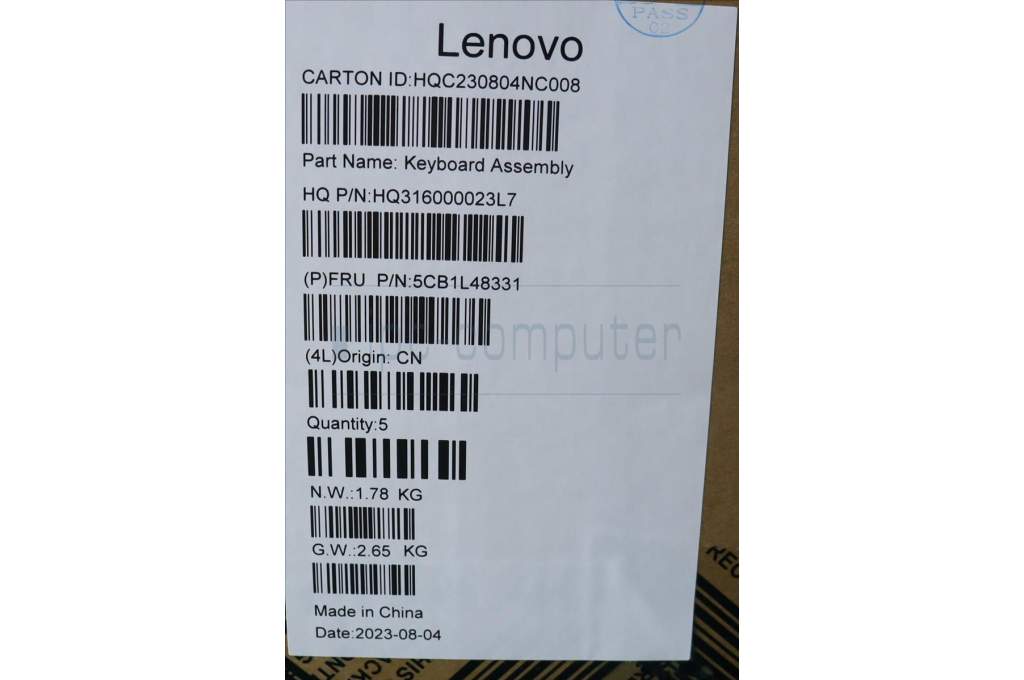 Lenovo 5CB1L48331 C-Abdeckung mit Tastatur, Slowenisch, Aquamarinblau, Ohne_Fingerabdruckscanner
