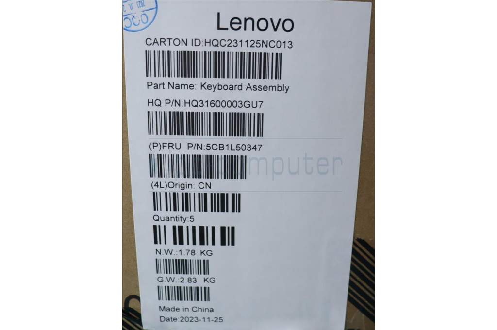 Lenovo 5CB1L50347 C-Abdeckung mit Tastatur, Russisch, Aquamarinblau, Puresight-Logo