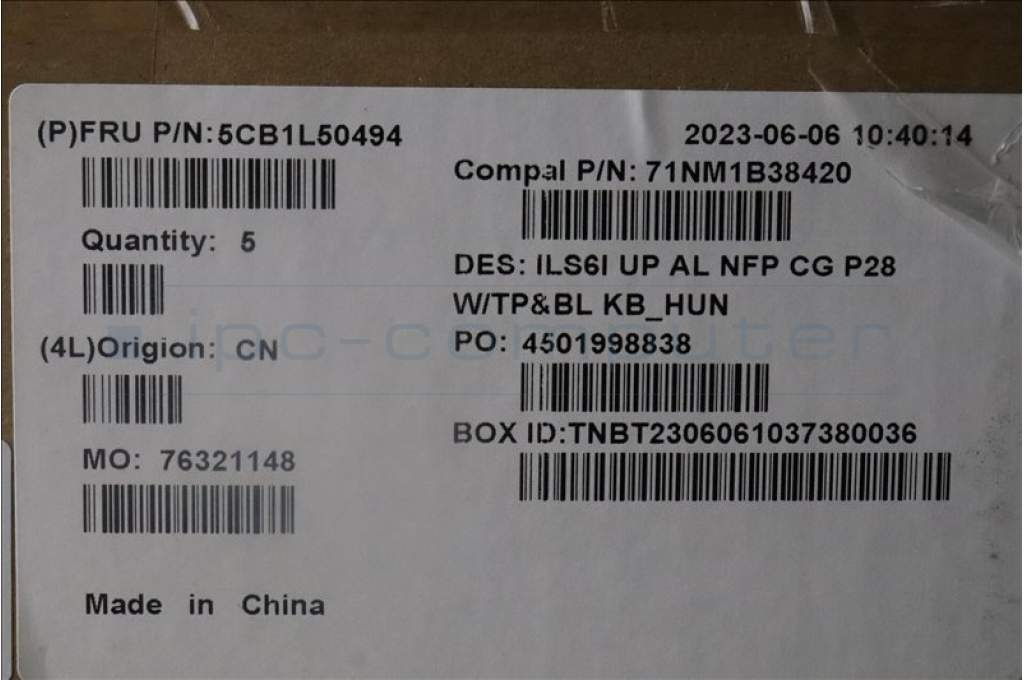Lenovo 5CB1L50494 C-Abdeckung mit Tastatur, Ungarisch, Wolkengrau, Hintergrundbeleuchtung, Ohne_Fingerabdruckscanner