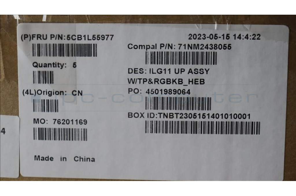 Lenovo 5CB1L55977 C-Abdeckung mit Tastatur, Hebräisch, RGB-Hintergrundbeleuchtung