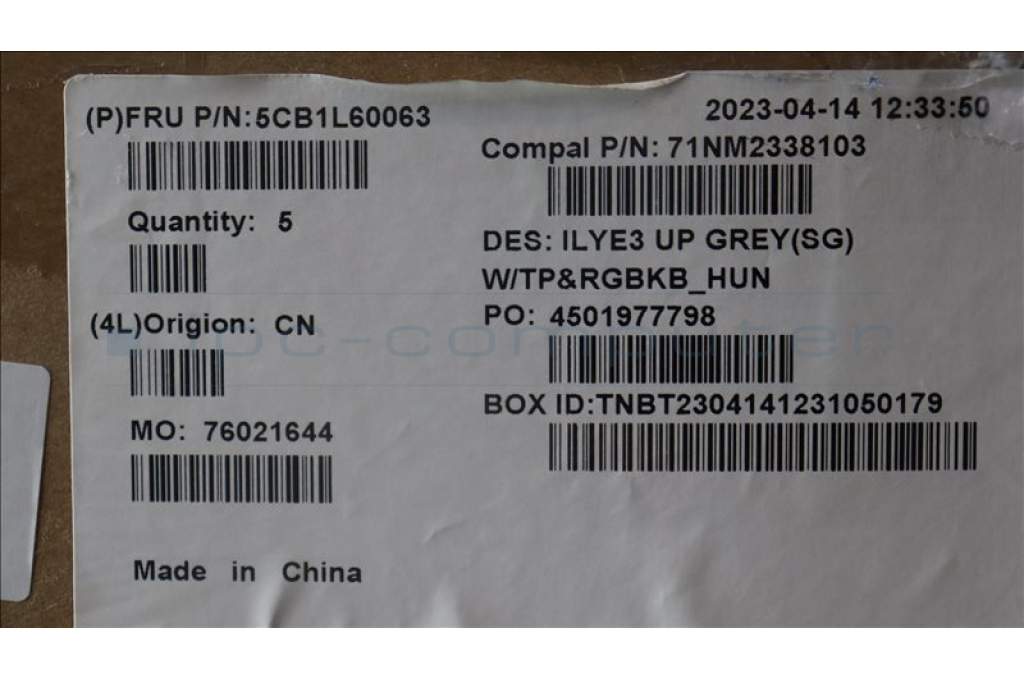 Lenovo 5CB1L60063 C-Abdeckung mit Tastatur, Ungarisch, sturmgrau, RGB-Hintergrundbel.