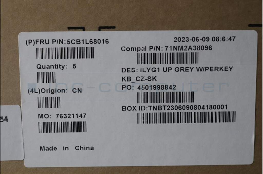 Lenovo 5CB1L68016 C-Abdeckung mit Tastatur, Tschechisch/Slowakisch, RGB-Hintergrundbel., GB