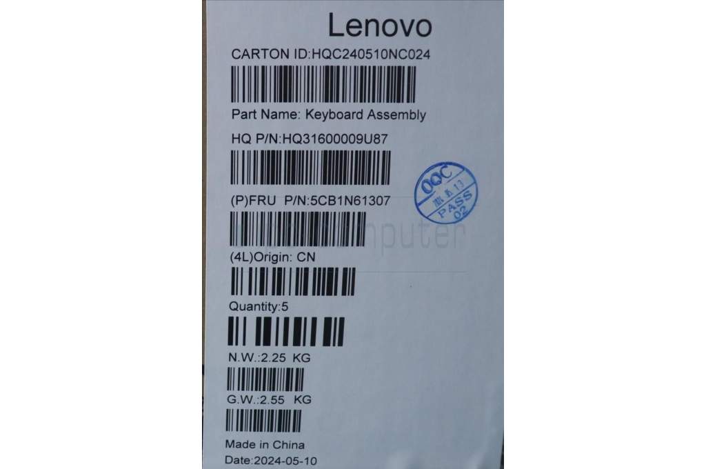 Lenovo 5CB1N61307 C-Cover with keyboard, French, Luna Grey, w/Storm Grey Keycaps, US