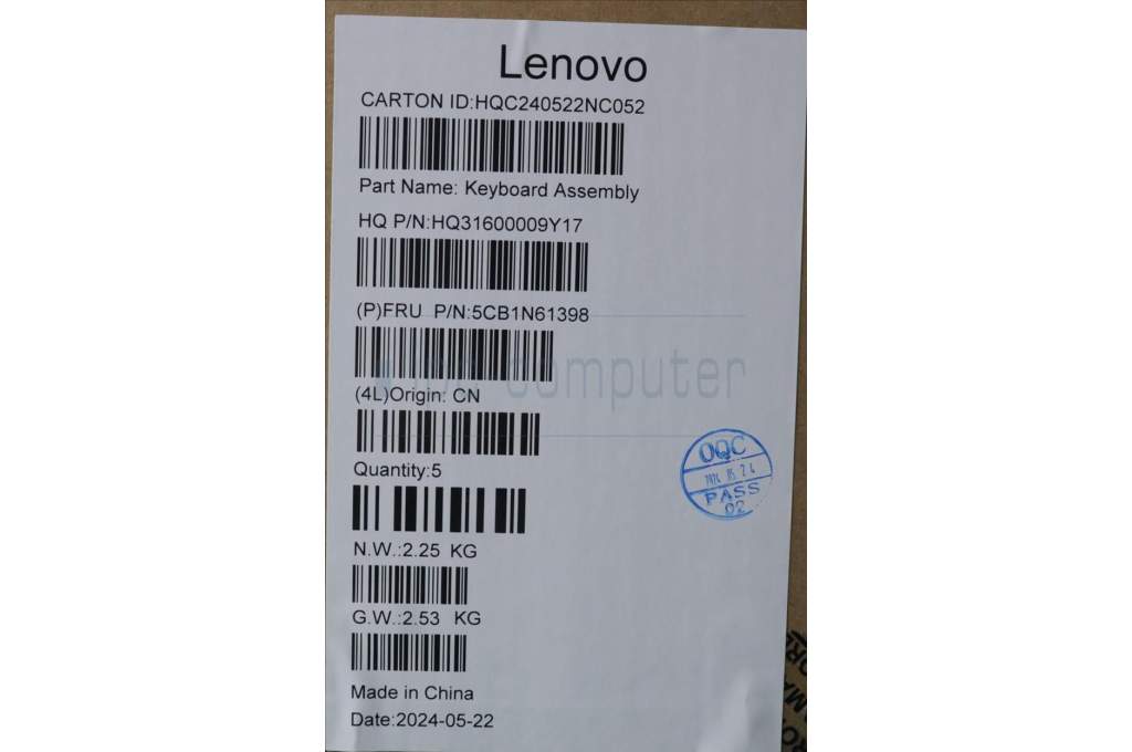Lenovo 5CB1N61398 C-Cover with keyboard, French, Cosmic Blue, w/Grey Keycaps, US