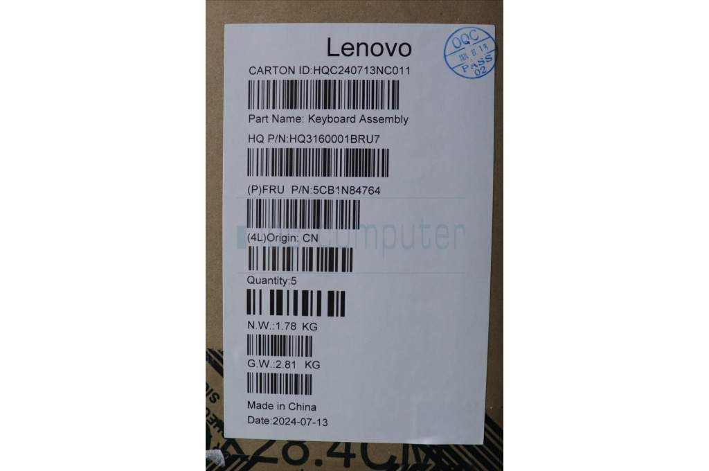 Lenovo 5CB1N84764 C-Cover with keyboard, French, Tidal Teal, w/puresight pro logo, US