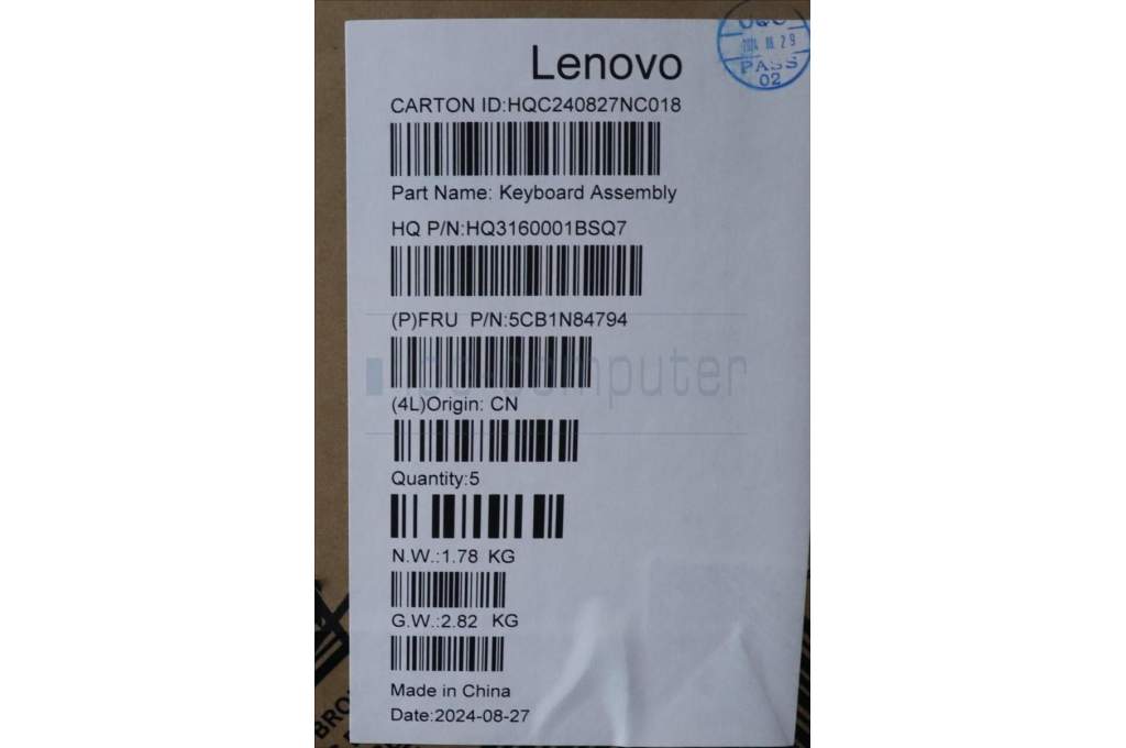 Lenovo 5CB1N84794 C-Cover with keyboard, Slovenian, Tidal Teal, w/puresight pro logo, UK