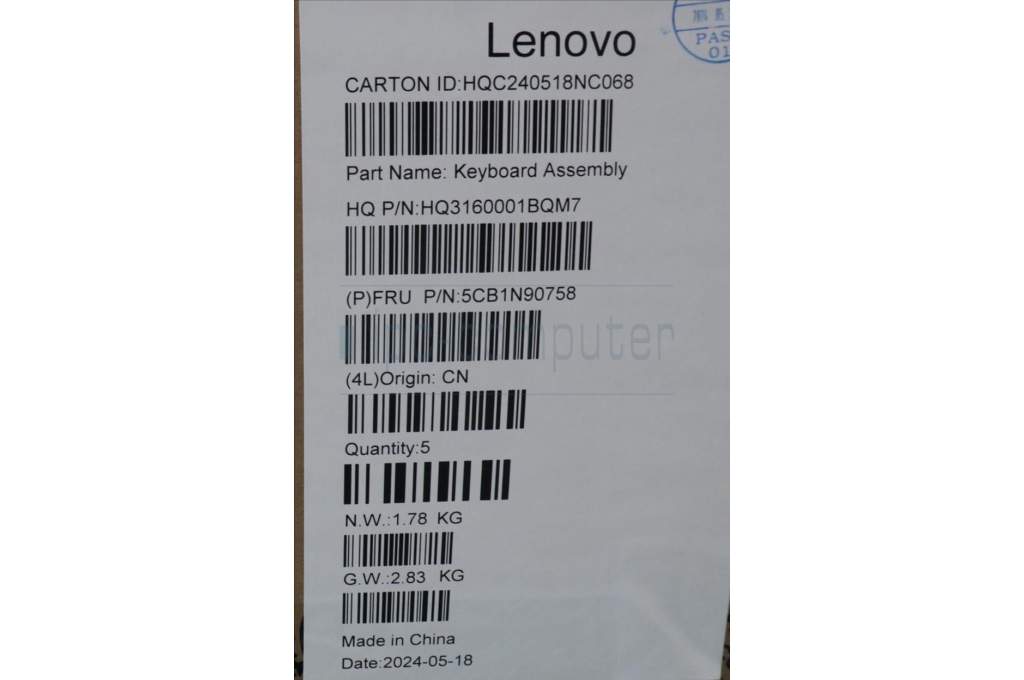 Lenovo 5CB1N90758 C-Cover with keyboard, Belgian, Luna Grey, UK