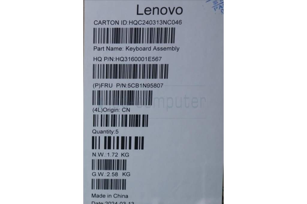 Lenovo 5CB1N95807 C-Cover with keyboard,UK English,Storm Grey,Non_Fingerprint