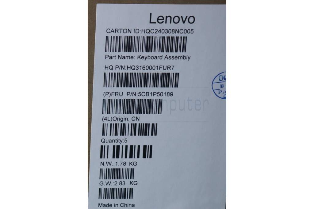 Lenovo 5CB1P50189 COVER Upper Case ASM GER H83E2 TT PST