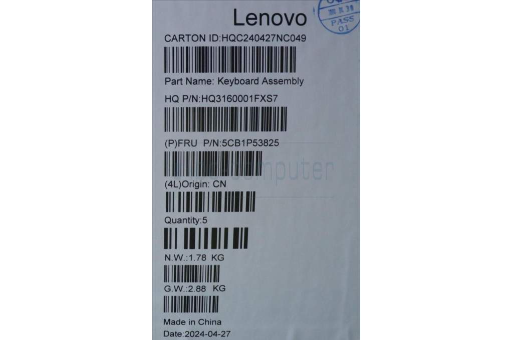 Lenovo 5CB1P53825 COVER UpCaseASM EUROENG H83E2 LG PST DIS