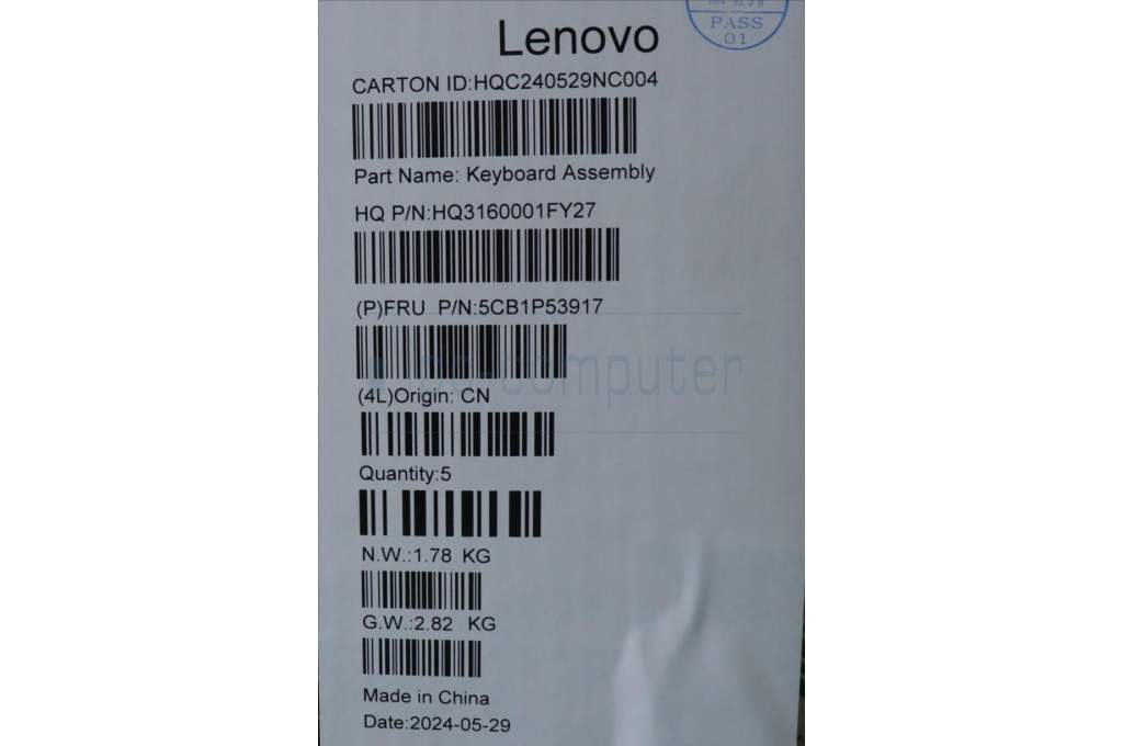 Lenovo 5CB1P53917 COVER UpperCaseASM GRE H83E2 LG PST DIS