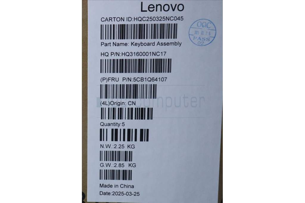 Lenovo 5CB1Q64107 C-Cover with keyboard, Spanish, Luna Grey, Non-Backlight, UK