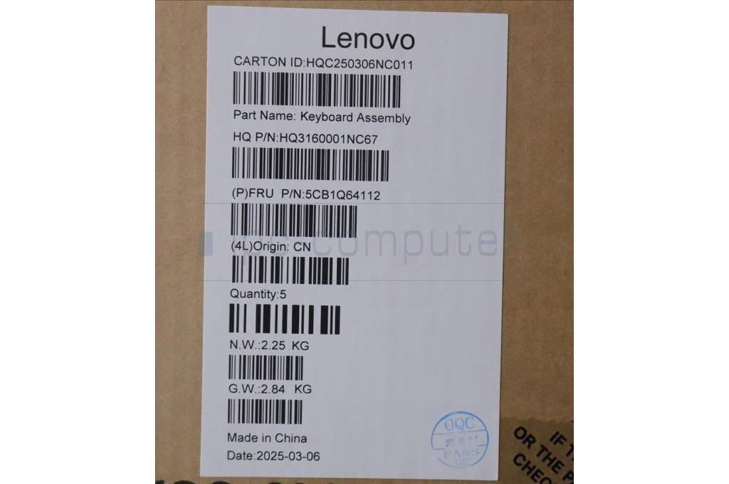 Lenovo 5CB1Q64112 C-Cover with keyboard, UK English, Luna Grey, Non-Backlight, UK