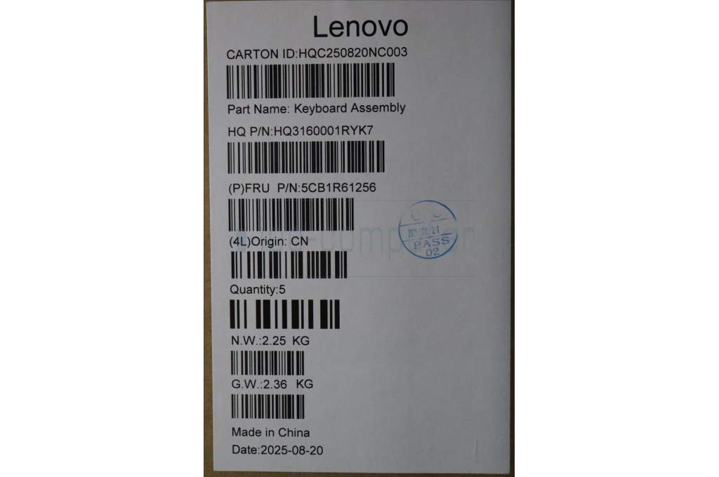 Lenovo 5CB1R61256 C-Cover with keyboard, Hungarian, Luna Grey, Non-FingerPrint, Puresight Logo, UK