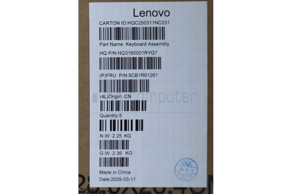 Lenovo 5CB1R61261 C-Cover with keyboard, Norwegian, Luna Grey, Non_FingerPrint, Puresight Logo