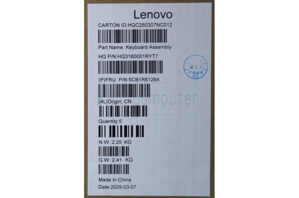 Lenovo 5CB1R61264 C-Cover with keyboard, Slovenian, Luna Grey, Non-FingerPrint, Puresight Logo, UK