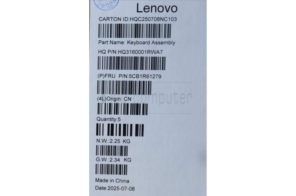 Lenovo 5CB1R61279 C-Cover with keyboard, Ukraine, Luna Grey, Non-FingerPrint, Puresight Logo, US