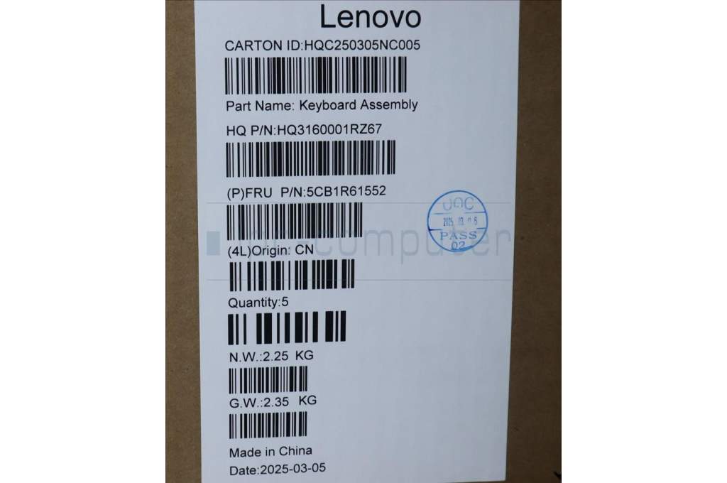Lenovo 5CB1R61552 C-Cover with keyboard, Hebrew, Luna Grey, Non-FingerPrint, Non-Puresight Logo, US