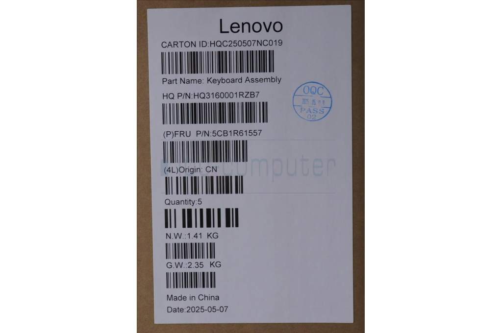 Lenovo 5CB1R61557 C-Cover with keyboard, Portuguese, Luna Grey, Non-FingerPrint, Non-Puresight Logo, UK