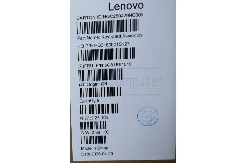 Lenovo 5CB1R61616 C-Cover with keyboard, Norwegian, Seashell, Non-FingerPrint, Non-Puresight Logo, UK