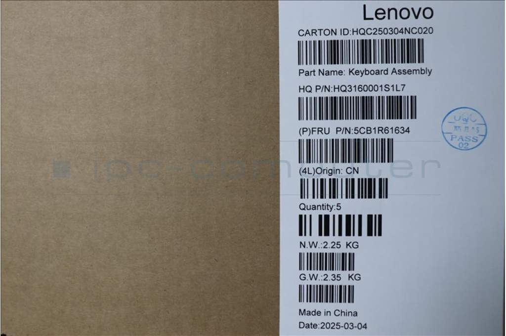 Lenovo 5CB1R61634 C-Cover with keyboard, US English Euro, Seashell, Non-FingerPrint, Non-Puresight Logo, US