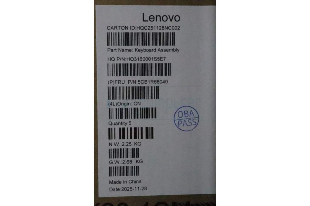 Lenovo 5CB1R68040 C-Cover with keyboard, French, Luna Grey, Non-Puresight Logo, FingerPrint, US