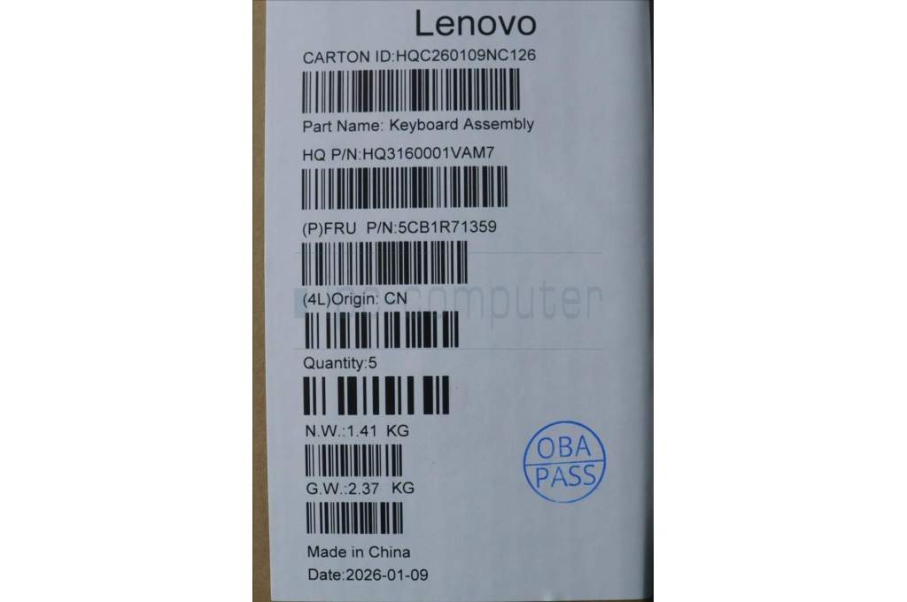 Lenovo 5CB1R71359 C-Cover with keyboard, Spanish, Seashell, Non-FingerPrint, Puresight Logo, UK