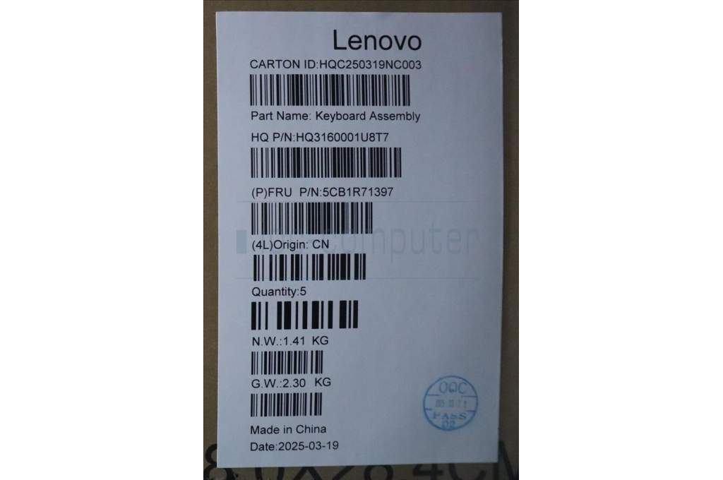 Lenovo 5CB1R71397 C-Cover with keyboard, Czech Slovakian, Tidal Teal, Non-FingerPrint, Non-Puresight Logo, UK