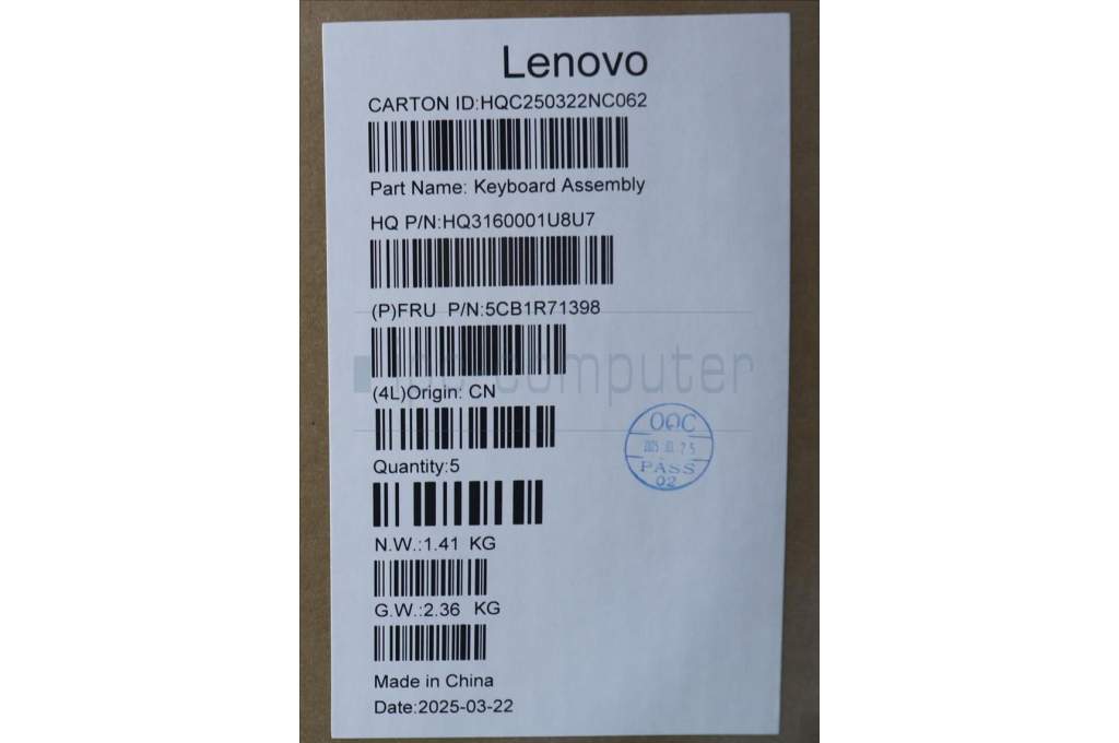 Lenovo 5CB1R71398 C-Cover with keyboard, Bulgarian, Tidal Teal, Non-FingerPrint, Non-Puresight Logo, UK