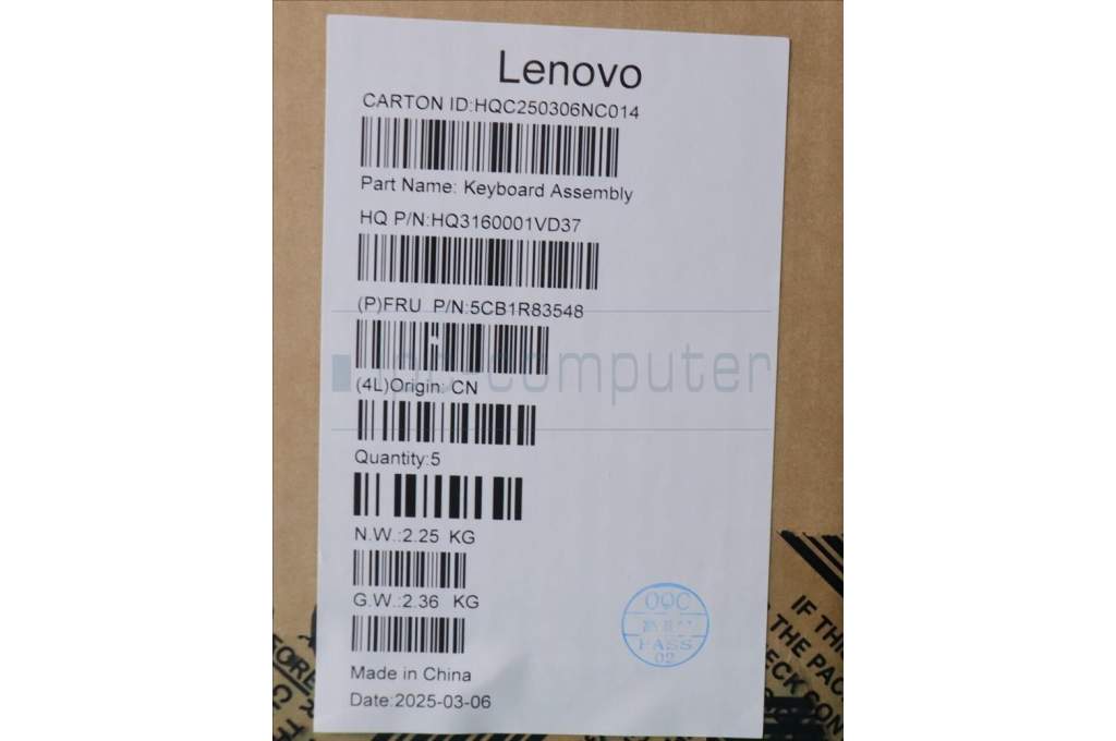 Lenovo 5CB1R83548 C-Cover with keyboard, German, Seashell, Non-FingerPrint, Non-Puresight Logo, UK