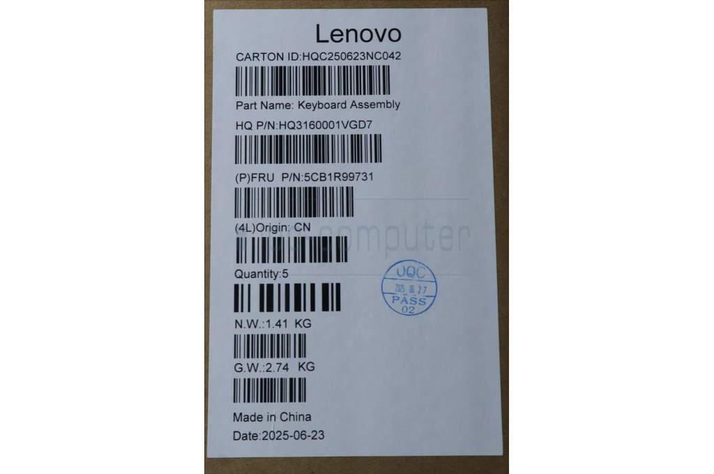 Lenovo 5CB1R99731 C-Cover with keyboard, Belgian, Seashell, FingerPrint, Puresight Logo, UK