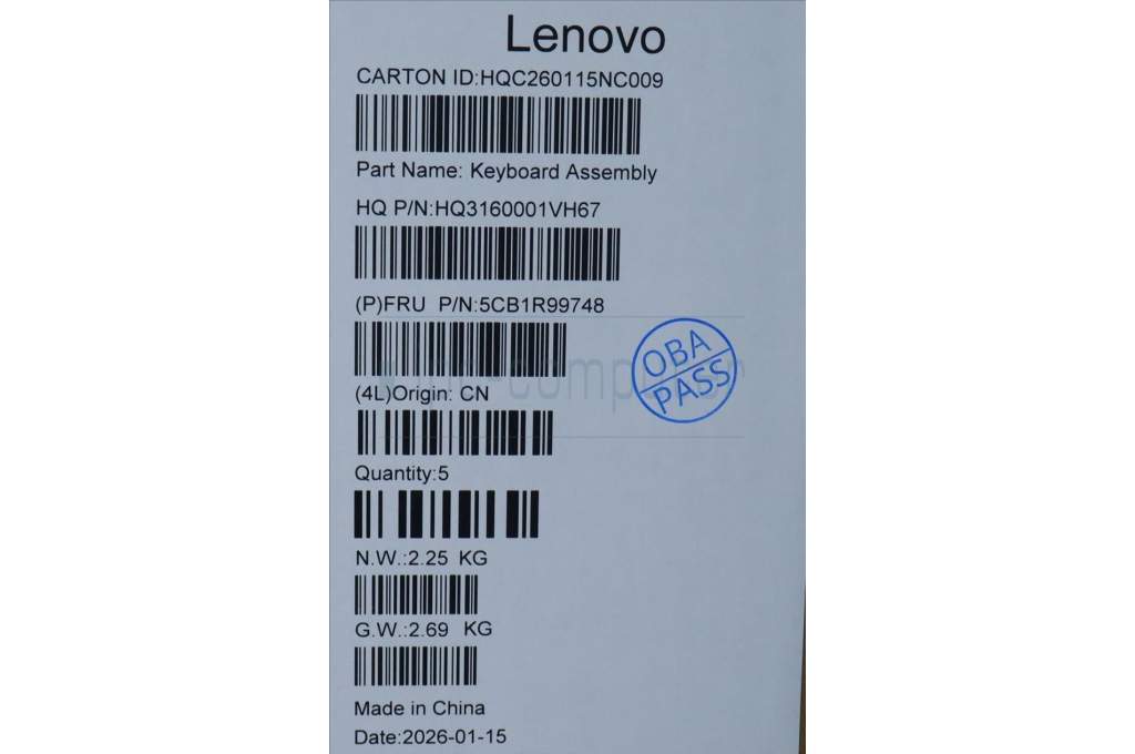 Lenovo 5CB1R99748 C-Cover with keyboard, Italian, Seashell, Non-FingerPrint, Non-Puresight Logo, UK
