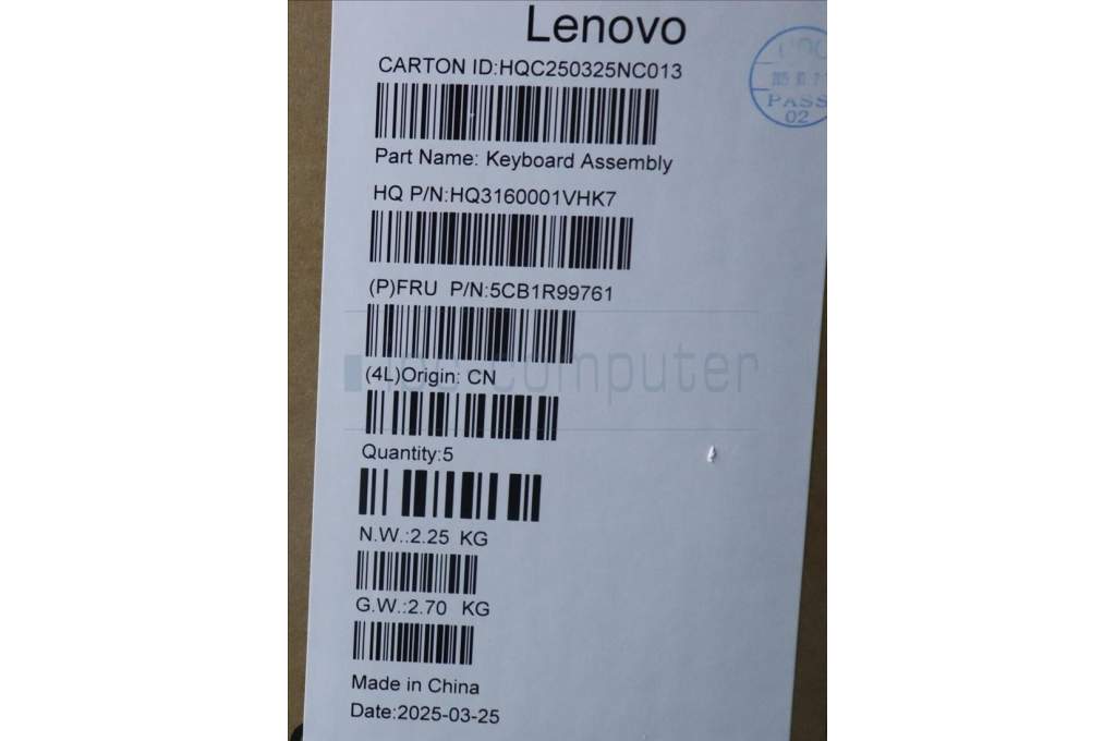Lenovo 5CB1R99761 C-Cover with keyboard, Nordic, Seashell, Non-FingerPrint, Puresight Logo, UK