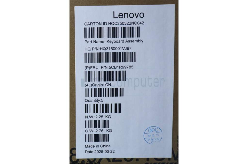 Lenovo 5CB1R99785 C-Cover with keyboard, Czech Slovakian, Seashell, Non-FingerPrint, Puresight Logo, UK