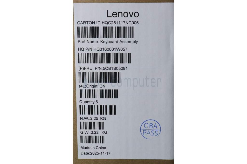Lenovo 5CB1S05091 C-Cover with keyboard, Hebrew, Luna Grey, Backlight, Non-FingerPrint, US