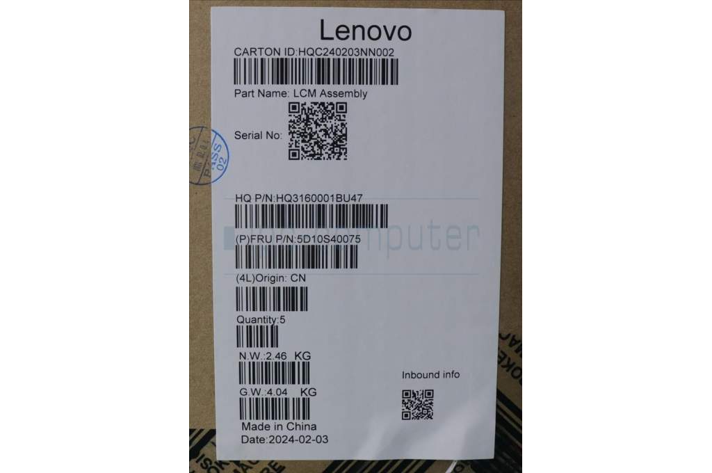 Lenovo 5D10S40075 Lenovo LCD Module,14",FHD,Touch,Glare,OLED,400nit,100% DCI-P3