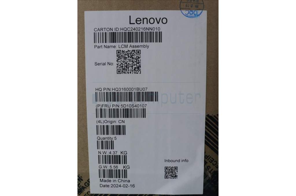 Lenovo 5D10S40107 Lenovo LCD Module,16",WUXGA,Touch,Glare,IPS,300nit,45%NTSC