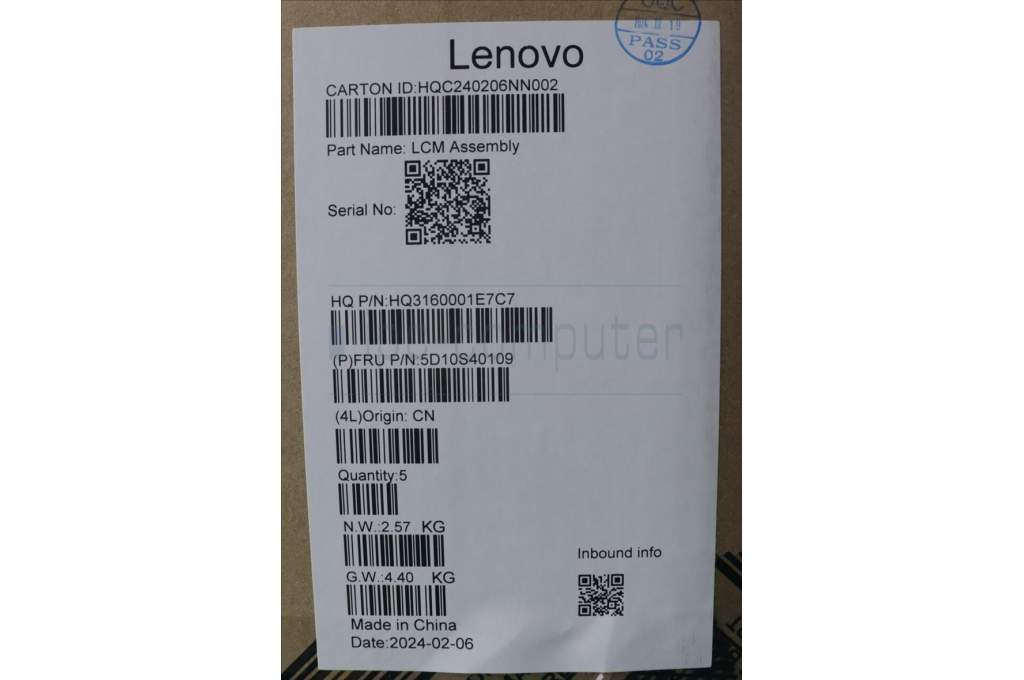 Lenovo 5D10S40109 DISPLAY HUD H 83DK 14WUXGA_GL300N_STGY