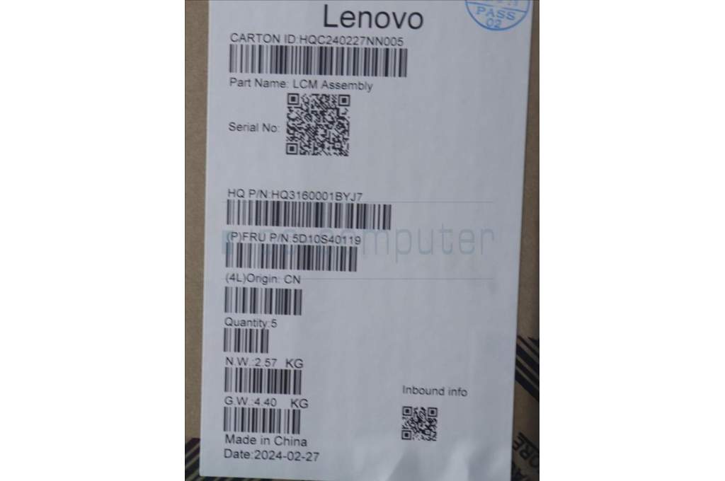Lenovo 5D10S40119 DISPLAY HUD H 83DJ 14WUXGA_GL300N_TT