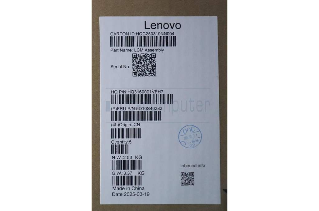 Lenovo 5D10S40282 Lenovo LCD Module, 14", 2.8K, Touch, Glare, Anti-smudge, OLED, 500nit, 100%DCI-P3, Seashell