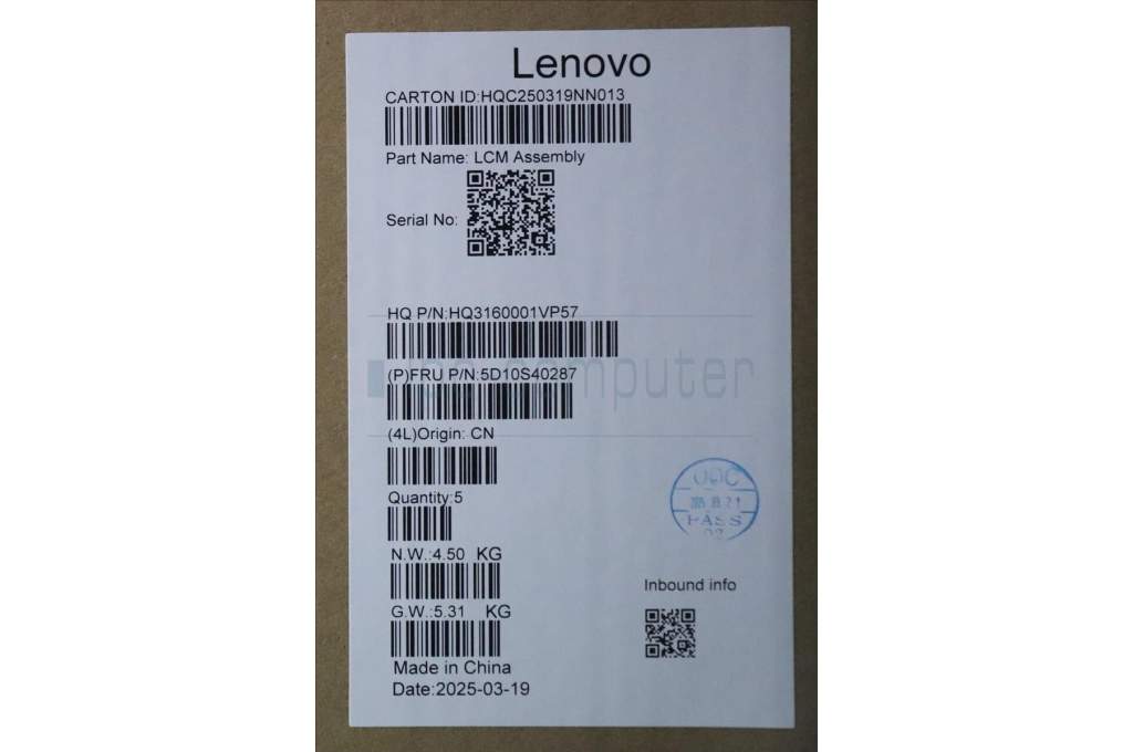 Lenovo 5D10S40287 Lenovo LCD Module, 16", WUXGA, Touch, Glare, Anti-smudge, IPS, 300nit, 45%NTSC, Seashell