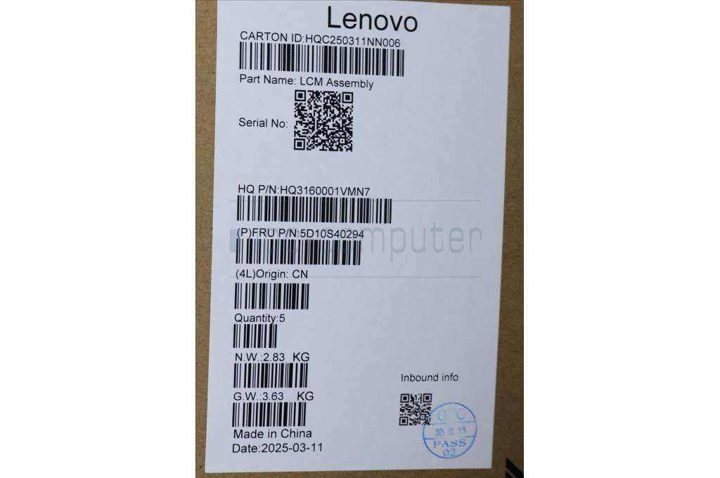 Lenovo 5D10S40294 Lenovo LCD Module, 14", WUXGA, Touch, Glare, OLED, 400nit, 100%DCI-P3, Luna Grey