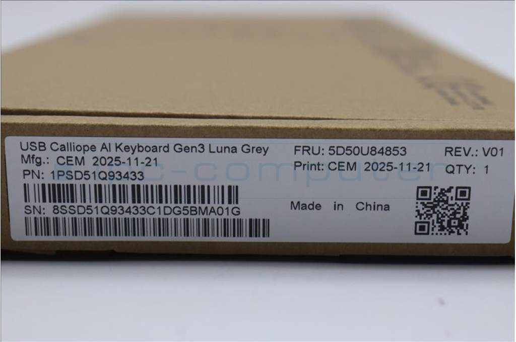 Lenovo 5D50U84853 Keyboard External, USB, US English Euro, Luna Grey