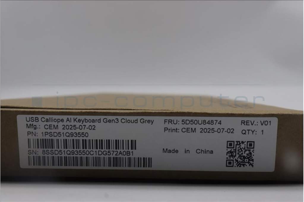 Lenovo 5D50U84874 Keyboard External, USB, French, Cloud Grey