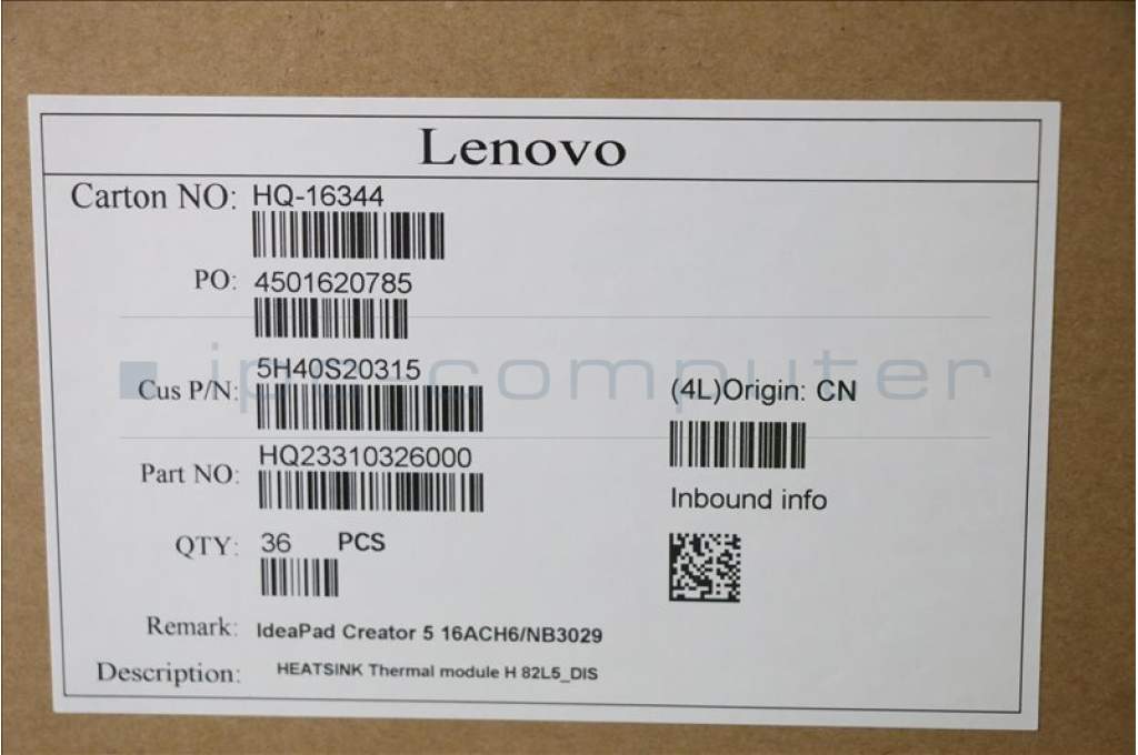 Lenovo 5H40S20315 Thermal module H 82L5_DIS FCN