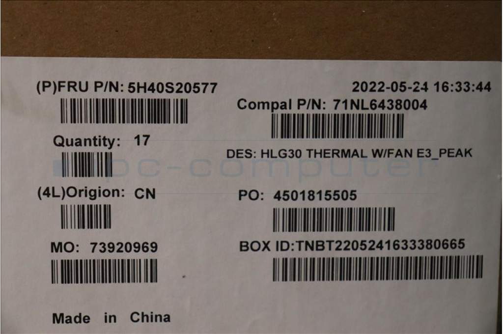 Lenovo 5H40S20577 Thermal Module 82S9 E3_Peak
