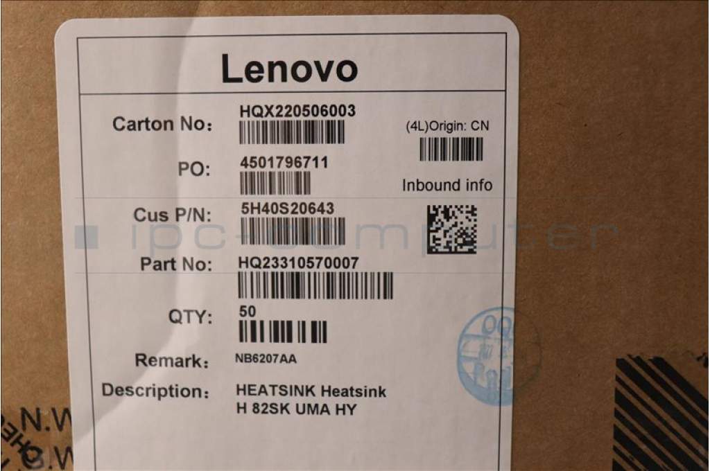 Lenovo 5H40S20643 Heatsink H 82SK UMA HY