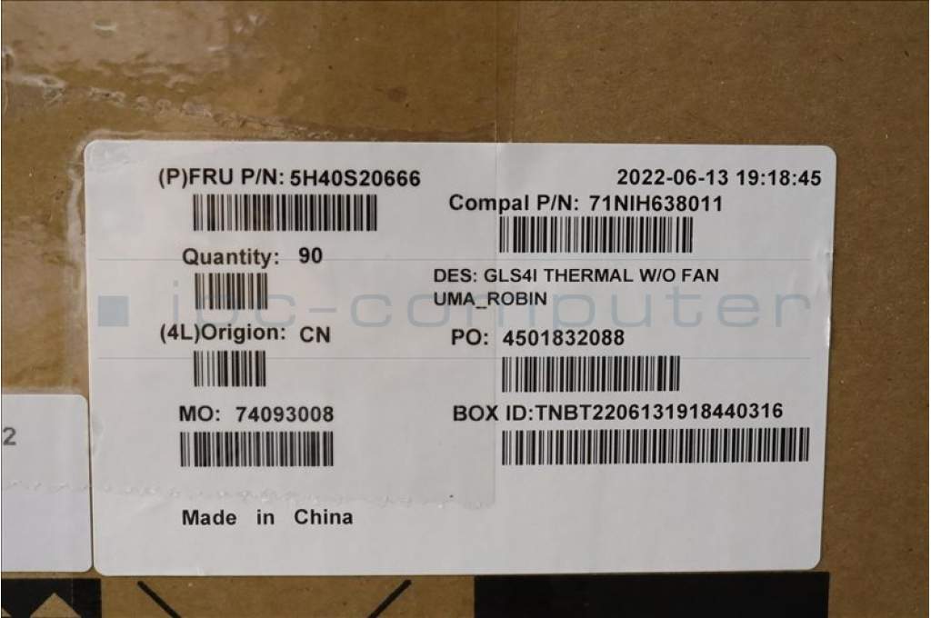 Lenovo 5H40S20666 Heatsink C 82SD UMA Robin